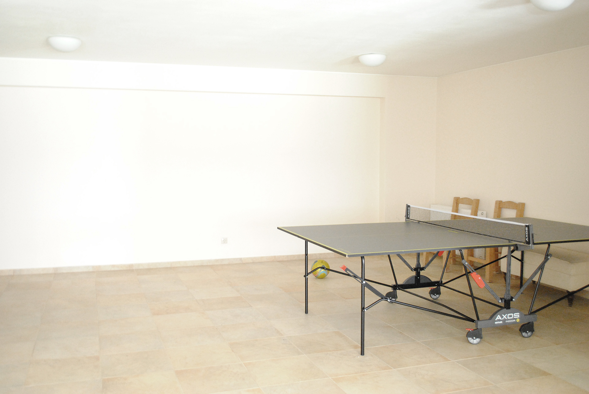 The door opens into a large games room with table tennis, flat screen TV, DVD player lounge with comfy seating and table ideal for board games.