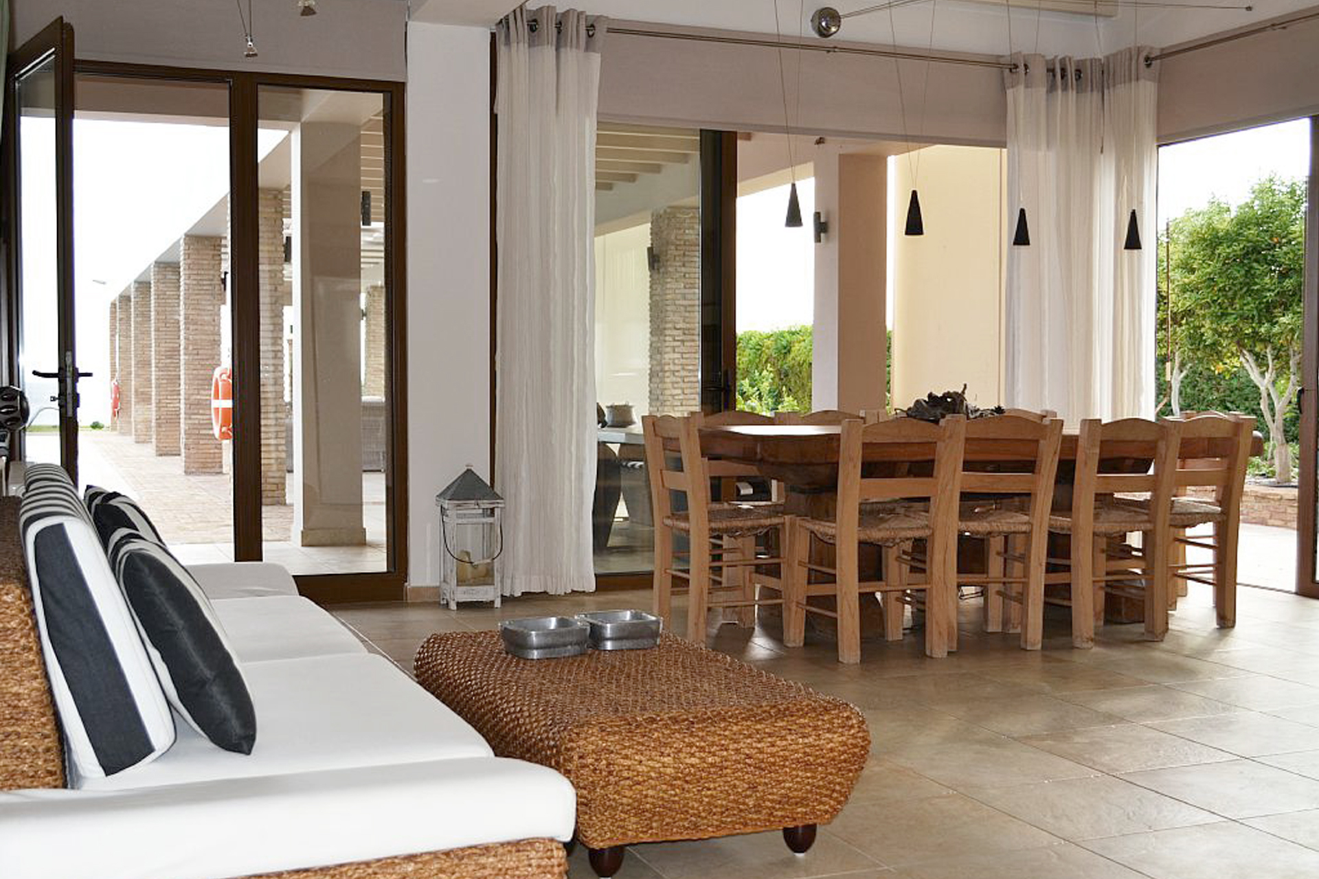 Villa Lefka is a luxury villa set right on a sandy beach on the West Coast of Greece on the Ionian Sea. Built on the water’s edge at the centre of an expansive lawn, surrounded by ancient Olive trees and lush vegetation its location could not be more magnificent. The spectacular scenery and natural beauty of the villa make it the most exclusive property in the area. The owners are a local family of Civil Engineers and Home Designers with a flair for style and design and have built the villa to the highest standards while keeping comfort and traditional Greek design in mind. Villa Lefka is discretely hidden by mature trees and manicured gardens ensuring that guests have privacy whilst still enjoying the superb views across the water from every corner of the property. Villa Lefka is ideal for both families and couples. Visit Villa Lefka for an unforgettably luxurious holiday on the undiscovered coast of the Ionian Sea.