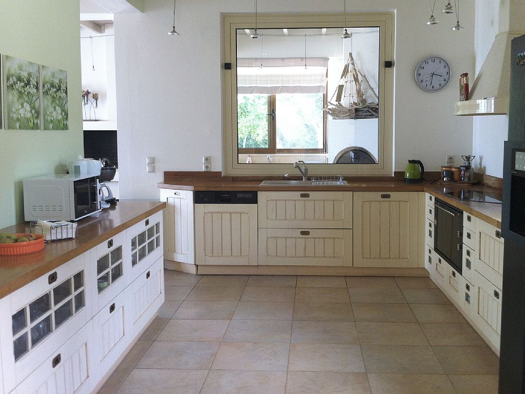 Villa Lefka has been carefully designed as a spacious and comfortable holiday home leaving guests feeling refreshed by its bright and airy design. The villa has the most wonderful garden and sea views through large sliding doors running the length of the property. With plenty of space for all your guests around the large dining table or choice of olive wood breakfast table or outdoor dining area it is ideal for catering at home. There are sofas and armchairs scattered throughout this exclusive property for pure indulgence and relaxation. The modern kitchen sits in between the formal dining area and the indoor breakfast area which leads directly out to covered outdoor dining. The kitchen is fully equipped with everything a comfortable home needs plus there is an indoor BBQ and a traditional wood oven. There is also a living room with a fireplace, flat screen TV with Satellite Channels plus a WC on the ground floor.