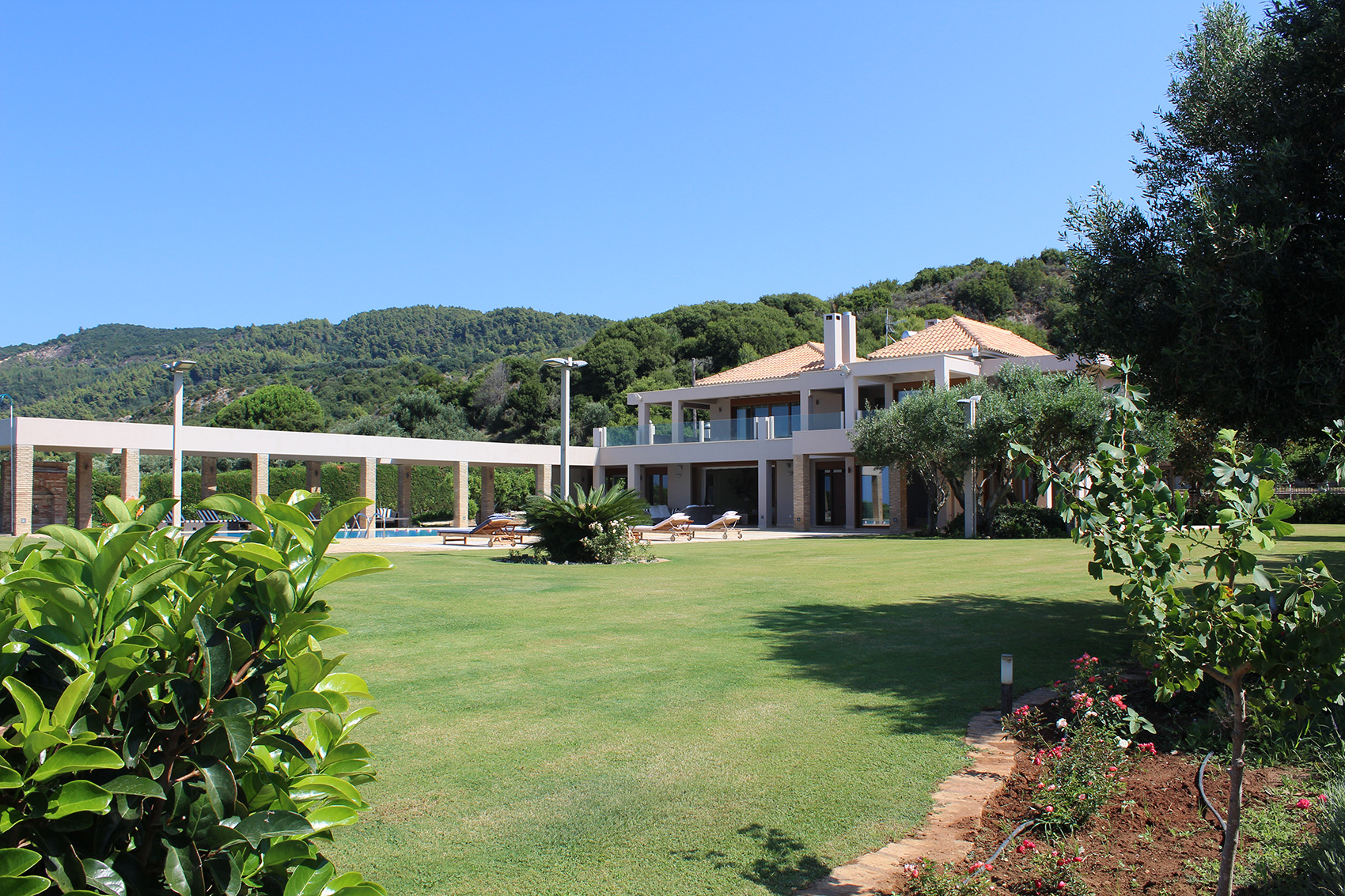 Villa Lefka is a luxury villa set right on a sandy beach on the West Coast of Greece on the Ionian Sea. Built on the water’s edge at the centre of an expansive lawn, surrounded by ancient Olive trees and lush vegetation its location could not be more magnificent. The spectacular scenery and natural beauty of the villa make it the most exclusive property in the area. The owners are a local family of Civil Engineers and Home Designers with a flair for style and design and have built the villa to the highest standards while keeping comfort and traditional Greek design in mind. Villa Lefka is discretely hidden by mature trees and manicured gardens ensuring that guests have privacy whilst still enjoying the superb views across the water from every corner of the property. Villa Lefka is ideal for both families and couples. Visit Villa Lefka for an unforgettably luxurious holiday on the undiscovered coast of the Ionian Sea.