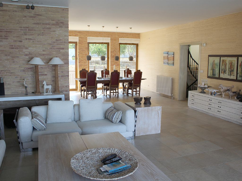 Large lounge with comfy sofas, TV and sound system and large dining table