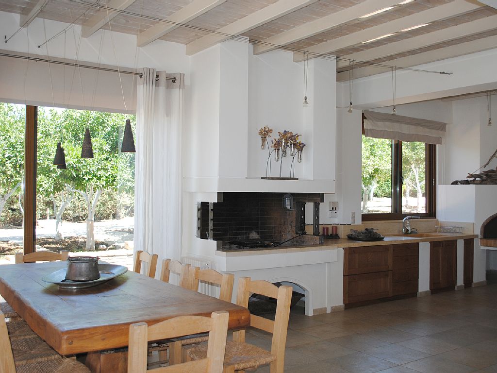 Villa Lefka has been carefully designed as a spacious and comfortable holiday home leaving guests feeling refreshed by its bright and airy design. The villa has the most wonderful garden and sea views through large sliding doors running the length of the property. With plenty of space for all your guests around the large dining table or choice of olive wood breakfast table or outdoor dining area it is ideal for catering at home. There are sofas and armchairs scattered throughout this exclusive property for pure indulgence and relaxation. The modern kitchen sits in between the formal dining area and the indoor breakfast area which leads directly out to covered outdoor dining. The kitchen is fully equipped with everything a comfortable home needs plus there is an indoor BBQ and a traditional wood oven. There is also a living room with a fireplace, flat screen TV with Satellite Channels plus a WC on the ground floor.
